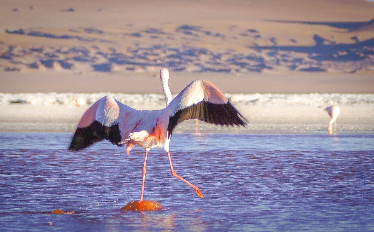 A Laguna Colorada é um local de reprodução de flamingos andinos, aves migratórias que chegam aos milhares em suas águas ricas em minerais. Ela está localizada na Reserva Nacional de Fauna Andina Eduardo Abaroa, Bolívia, no altiplano de Potosi.